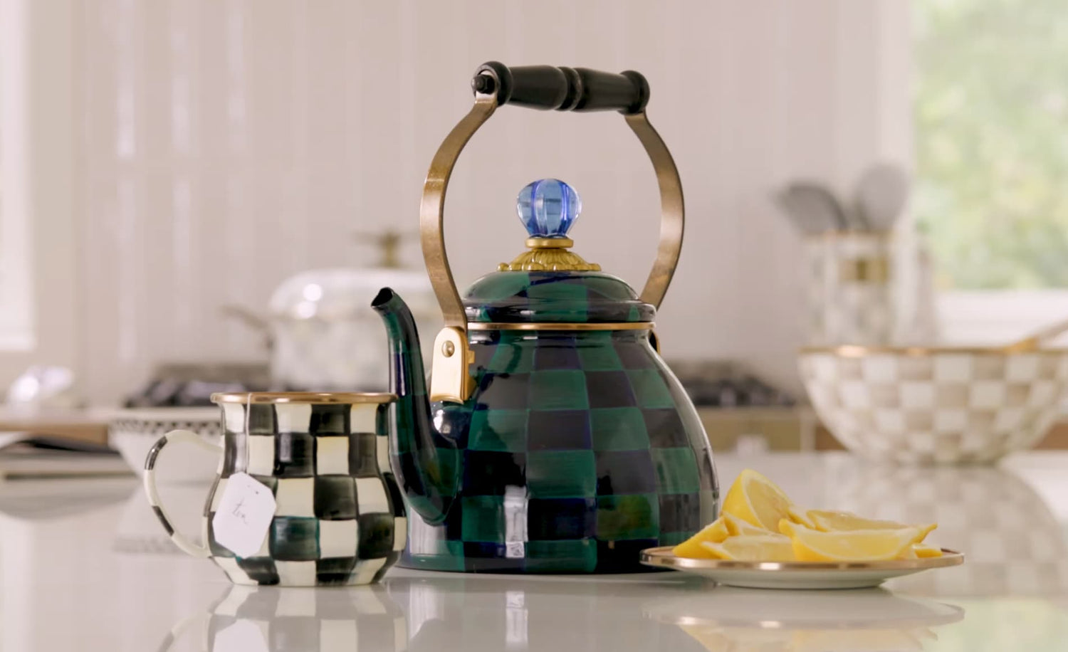 Mocha Check 1.89L Tea Kettle by MacKenzie-Childs